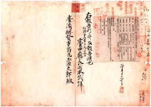 七八 第一二号 宜蘭庁管内頭圍堡下リョ庄荘月中・員山堡深溝庄黄林代阿■(執+土)・頭圍堡港澳庄張阿全・武壮圍堡公舘庄林渓水ノ船鑑札無効ニ付キ同庁ヨリ通知ノ件