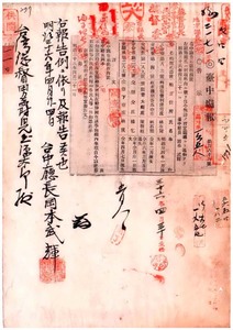 一一〇 第四四号 宜蘭庁管内利沢筒堡利沢筒庄林有財、紅水溝堡各瓜山庄林石頭、頭圍堡大福庄ノ陳朝旺・楊乞、同堡下リョ庄林戻ノ船鑑札ヲ無効ニシタル旨同庁ヨリ通知ノ件
