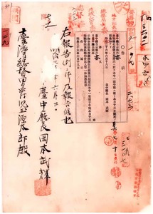 台中廳告示第六十六號南投廳下牛疫發生ニ付キ牛羊屬ノ出入及ヒ病毒運搬ノ物品停止ノ件