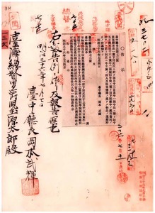 台中廳告示第七十三號苗栗廳ヨリ通知管下牛疫發生ニ付キ牛羊屬ノ出入及ヒ病毒傳播ノ虞アル物品ノ運搬停止ノ件