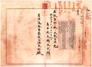 台中廳告示第百五十八號南投廳牛疫發生ニ付牛羊屬ノ出入及ヒ物品運搬停止