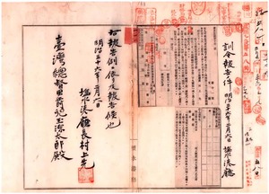鹽水港廳訓令第二號收入印紙貼用善類整理手續ノ件