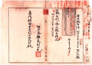 鹽水港廳告示第二十號下茄苳南堡下百斯篤發生ノ件