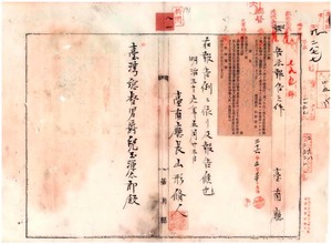 八一 第五一号 嘉義庁管内ニ流行シタル牛疫熄滅ノ為メ当該地域ニ発令シタ牛属出入及ヒ病毒伝播ノ虞アル物品ノ運搬ヲ停止シタル処置ヲ解除スル旨同庁ヨリ通知ノ件