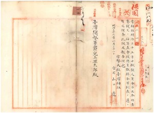 一二 官幣大社台湾神社明治三五年中献饌人員金品及ヒ参拝者賽銭并ニ神符直会授与員数料金等ニ付キ報告ノ件