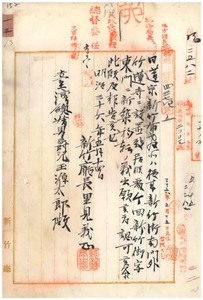 佛教ニ屬スル宗制寺法等回付方照會ノ件〔日蓮宗新竹布教所新築移轉認可ニ付キ新竹廳長里見義正報告ノ件〕