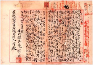 一七 元清国軍隊営所跡ノ文昌祠及ヒ媽祖廟附属地タル斗六北門街頭陸軍偕行社裏手ニテ発見サレタル外国古貨幣ニ付キ斗六庁長荒賀直順ノ報告及ヒ埋蔵物トシテ処置シタルノ件