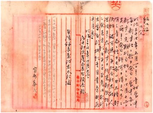 約束郵便繼續ノ件、訓令第三二號、右ニ付遞信大臣ニ報告及台中局長ヘ通牒