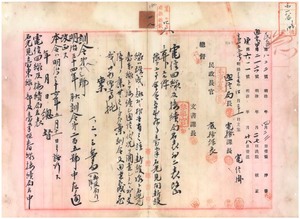 二八 明治三四年六月訓令第二〇五号中電信回線及接続局名表・電報中継順路表・局報順送表中改正ノ件