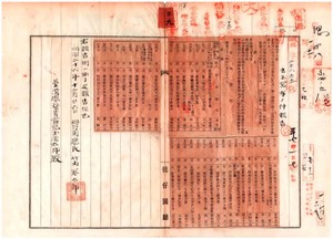 三九 桃仔園庁告示第八八号ニヨリ陳必敬・邱王有・王土水・林日・黄塗・黄水連・簡万梓・徐阿喜・尤坤・李福・呉春木・李阿母・楊赤牛・劉什・劉禄・呉枝・陳■(失+心)九・劉桂霜・頼渓・黄碧祥・王万烈・楊阿生・呉連徳・葉玉典・鐘徳進・游厚・游水和・黄阿城・鄧増生・曽国成・彭阿有・黄石養・蕭山・姜梅ハ阿片烟膏吸食特許鑑札亡失ニ付キ該鑑札ヲ無効トシタル旨同庁ヨリ通知ノ件