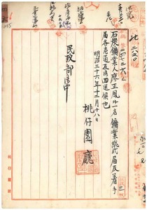 四六 桃仔園庁石炭礦業人廖正鳳・黄木ヨリ廖正鳳ヲ石炭礦業総代人ト定メタル旨及ヒ石炭礦採掘着手ニ付キ届出ノ件