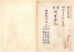 明治三十六年一月重罪刑事登記、總紙數拾八枚、台南地方法院、嘉義出張所、鳳山出張所