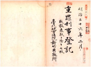 明治三十六年二月重罪刑事登記、紙數表紙ヲ除キ七枚、台北地方法院新竹出張所