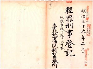 明治三十六年二月輕罪刑事登記、紙數表紙ヲ除キ八十枚、台北地方法院新竹出張所