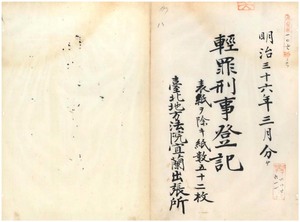 明治三十六年三月輕罪刑事登記、表紙ヲ除キ紙數五十二枚、台北地方法院宜蘭出張所