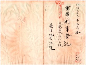 六 明治三六年五月分 重罪刑事登記台中地方法院 四枚