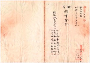 九 明治三六年五月分 軽罪刑事登記台南地方法院 一〇一枚同院嘉義出張所 一三七枚同院鳳山出張所 七八枚