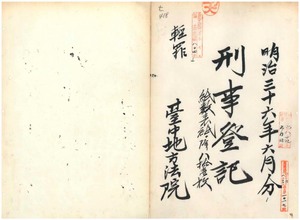 明治三十六年六月輕罪刑事登記、紙數表紙ヲ除ク八拾壹枚、台中地方法院
