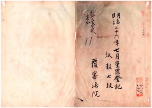 一 明治三六年七月分 重罪登記覆審法院 台北地方法院 一枚台中地方法院 二枚台南地方法院嘉義出張所 二枚同院鳳山出張所 二枚