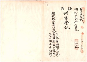 九 明治三六年七月分 軽罪刑事登記台南地方法院 一〇八枚同院嘉義出張所 九九枚同院鳳山出張所 一一五枚