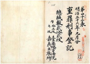 八 明治三六年九月分 重罪刑事登記台南地方法院 一五枚同院嘉義出張所 七枚