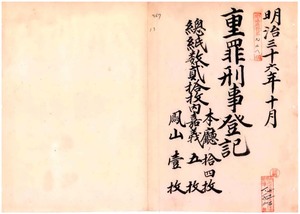 明治三十六年十月重罪刑事登記、總紙數貳拾枚、台南地方法院、嘉義出張所、鳳山出張所