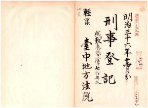 明治三十六年十一月輕罪刑事登記、紙數表紙ヲ除キ七拾五枚、台中地方法院