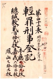 八 明治三六年一一月分 軽罪刑事登記台南地方法院 七一枚同院嘉義出張所 六四枚同院鳳山出張所 八四枚