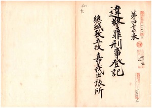 明治三十六年十一月違警罪刑事登記、總紙數五枚、嘉義出張所