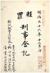 明治三十六年十二月輕罪刑事登記、總紙數貳百參拾四枚、台北地方法院、新竹出張所、宜蘭出張所