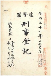 五 明治三六年一二月分 違警罪刑事登記台北地方法院 一枚同院新竹出張所 一枚