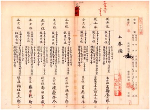 二七 高橋辰次郎・大内丑之助・宮尾舜治・手島兵次郎・渡辺啓太・高田富蔵・藤井乾助・稲垣兵太郎・佐藤謙之輔・赤堀廉蔵・清水一徳・松岡十次郎・増山泰次郎・小野得一郎・高田鈒一郎・図師庄一郎・山路魁太郎・鉅鹿赫太郎・藤野貞順・木下龍・志和池善介・千葉万寿・山田申吾・渡部春蔵・愛発時三郎・志保田鉎吉・早瀬己熊・向井田善五郎・松尾峯太郎・山上吉蔵・賀来佐賀太郎・星野一雄陞位又ハ叙位ニ付キ内務大臣宛上奏ノ件