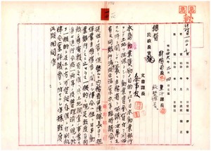 一四 律令第二号日本勧業銀行ノ貸付ヲ為ス土地ニ関スル件、民政長官後藤新平ヨリ参事官長石塚英蔵ヘ上奏勅裁ノ件