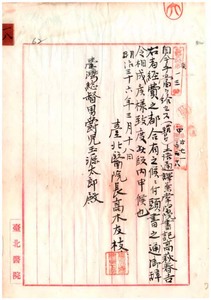 一八 土語通訳兼掌総督府医院書記高萩春吉ハ自今手当ヲ給セス