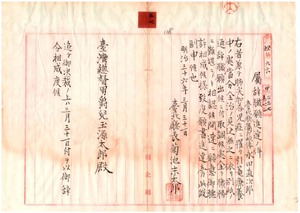 三七 台北庁勤務台北庁属永田直次郎ヲ辞職願ニ依リ本官ヲ免シ、民政部通信局勤務総督府技手浜松順正ヲ昇級ノ上辞職願ニ依リ本官ヲ免シ事務格別勉励ニ付キ賞与ス
