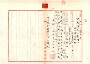 臺灣總督府燈臺所看守酒井重太郎外二名勤務命令