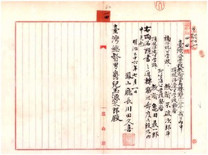 一四 頂林仔辺公学校勤務台湾公学校教諭不破次郎平ニ楠梓坑公学校勤務ヲ命シ、阿公店公学校勤務台湾公学校教諭亀田最一郎ニ頂林仔辺公学校勤務ヲ命ス
