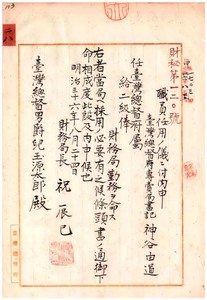 臺灣總督府專賣局書記神谷由道總督府屬ニ任セラレ財務局勤務ヲ命セラル
