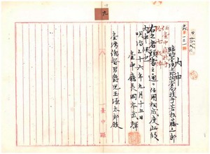 九 臨時台湾土地調査局技手若松藤三郎ヲ台中庁技手ニ任ス