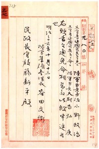 陸軍步兵少佐小野政治陸軍步兵大尉吉弘庚文官普通懲戒委員ヲ命セラル