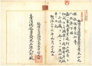 一六 臨時台湾土地調査局監督官青木正元ヲ昇等 ノ上休職 ヲ命ス(1903/09/29~1903/10/30);岡本忠平免官・永井一雄ノ海外派遣ヲ免スル旨通知ノ件(1903/10/22~1903/10/30)