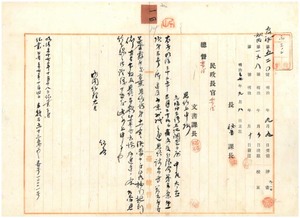 一四 元臨時台湾土地調査局属中尾太直ヘ恩給証書送付ノ件