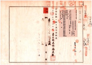 三六 第三六号 台北庁興直堡新庄■(氵+榮)和街黄慶霖ト大加蚋堡城内府前街石黒光石ニ収入印紙売捌許可ノ件