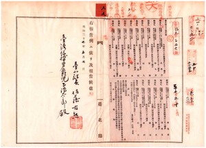 九九 第一〇〇号 台北庁大加蚋堡大稲埕港辺街林再生・興直堡新庄草店尾街林九母・大加蚋堡下陂頭庄陳池・同堡艋舺滬尾渡頭街陳益記・同堡艋舺媽祖宮後街林本・芝蘭一堡社仔庄許樹・芝蘭一堡葫蘆堵庄陳番・芝蘭二堡和尚洲中洲埔庄李朱桃・芝蘭二堡和尚洲水湳庄李金舜・芝蘭二堡関渡渡船頭庄郭査某・芝蘭二堡和尚洲和尚港庄李士文、芝蘭三堡頭囲庄ノ連賜・郭仙、同堡下圭柔山庄周在ハ船鑑札流失ニ付キ該鑑札ヲ無効トス