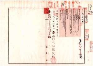 一三四 第一三五号 台北庁大加蚋堡府前街張江ノ人力車営業許可・人力車検査証ヲ、同庁同堡北門外街黄■(示+未)ノ人力車車夫鑑札ヲ取消ス