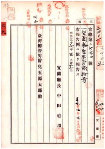 宜蘭廳告示第二十號桃仔園廳基隆廳二廳獸疫通知