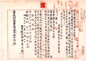 三五 第一三号 桃仔園庁桃澗堡桃園街ニ豚虎列拉発生及ヒ同庁桃澗堡宋屋庄ニ牛疫発生ニ付キ同庁ヨリ通知ノ件