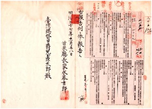 苗栗廳告示第第百十四號臺中廳下ニ於ケル獸疫發生ノ件、苗栗廳告示第百十五號新竹廳下ニ同上ノ件、苗栗廳告示第百十六號新竹廳下ニ同上ノ件、苗栗廳告示第百十七號一円銀貨幣ノ價格改定ノ件