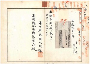 臺中廳廳令第一號大肚中堡北勢坑庄ニ牛疫發生ニ付キ牛羊屬ノ出入及ヒ病毒傳播ノ虞アル物品運搬停止ノ件