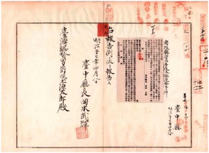 三八 第三八号 南投庁管内ニ牛疫・豚疫発生シ蔓延ノ兆アルニ依リ牛羊属並ニ豚ノ出入及ヒ病毒伝播ノ虞アル物品ノ運搬ヲ停止シタル旨同庁ヨリ通知ノ件